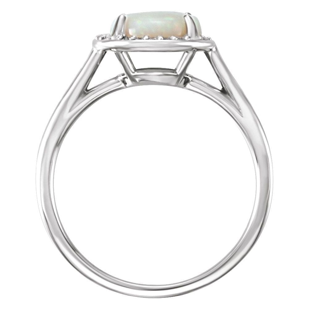 14K White Natural White Opal & .05 CTW Natural Diamond Ring