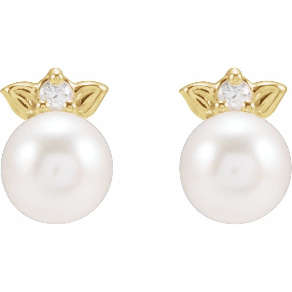 14K Yellow Cultured Akoya Pearl & .03 CTW Natural Diamond Floral Earrings